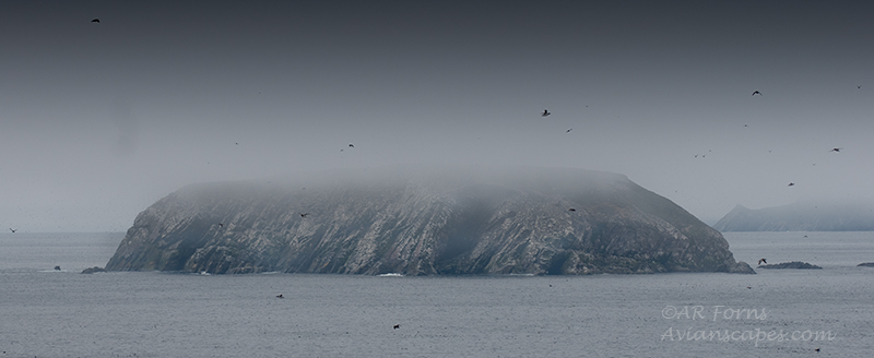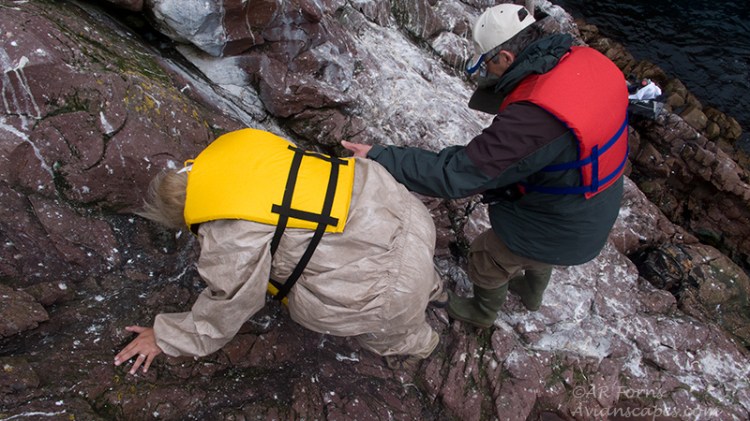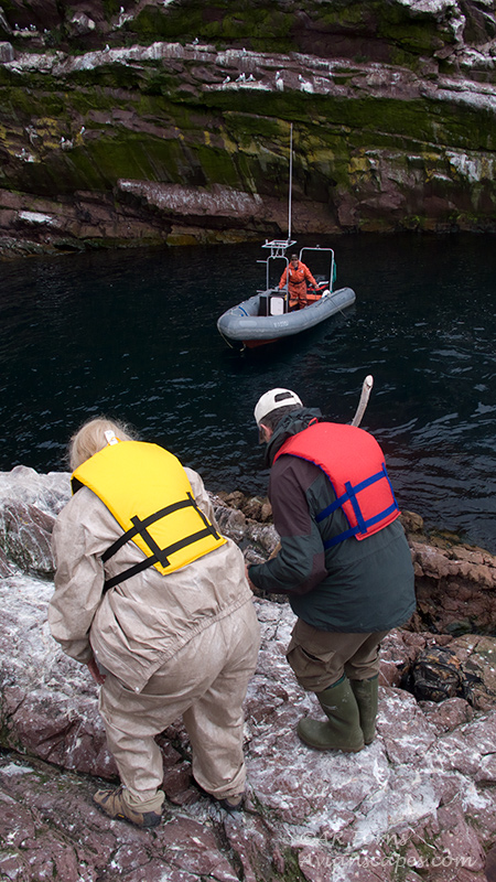 Weather is always a problem so you will get a three day window for getting on to the island and once you get there you hope landing will be possible. There is no easy area to land, you just leap from the boat to rocks and hang on !!! Moving at first is difficult, since the going is steep and extreme caution is needed. After a successful landing you make your way up, first through colony of herring gulls which will attack you, so placing the tripod over hour head for protection is necessary.