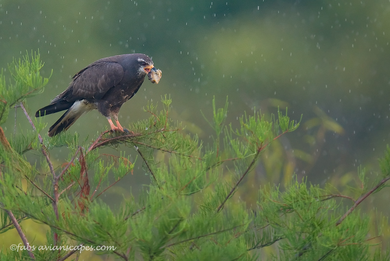 Female Kite with snail on a rainy day.